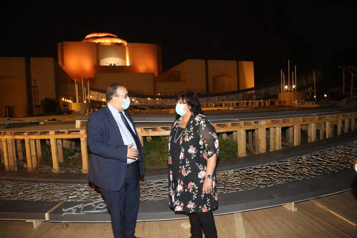 وزيرة الثقافة تتفقد مسرح النافورة استعدادا لمهرجاني الموسيقى والقاهرة السينمائي