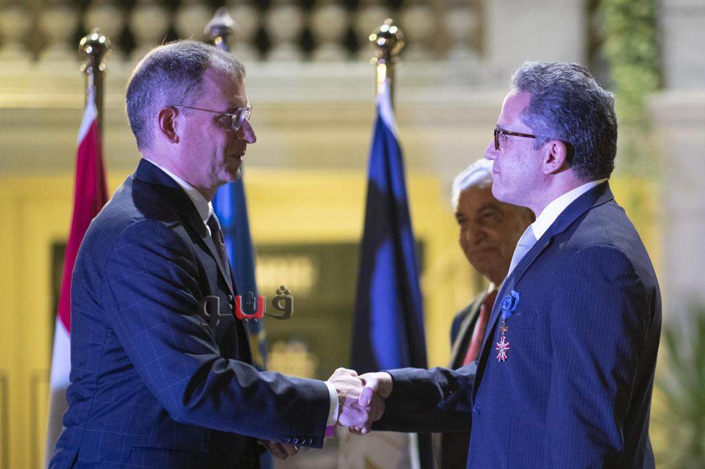 وسلم السفير ميهاو وابيندا، سفير دولة بولندا بالقاهرة، الدكتور خالد العناني والدكتور زاهي حواس وسام الاستحقاق البولندي.