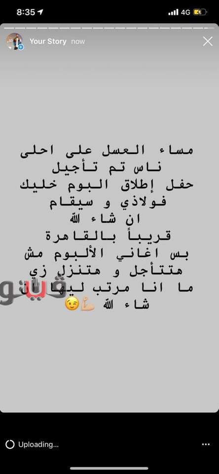وأضاف: «أغاني الألبوم مش هتتأجل هتنزل زي ما أنا مرتب ليها إن شاء الله».