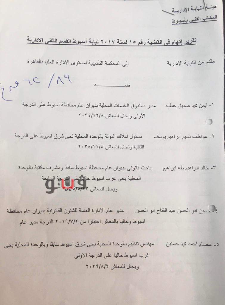 بالأسماء والمستندات.. إحالة 5 مسئولين بمحافظة أسيوط للمحاكمة العاجلة