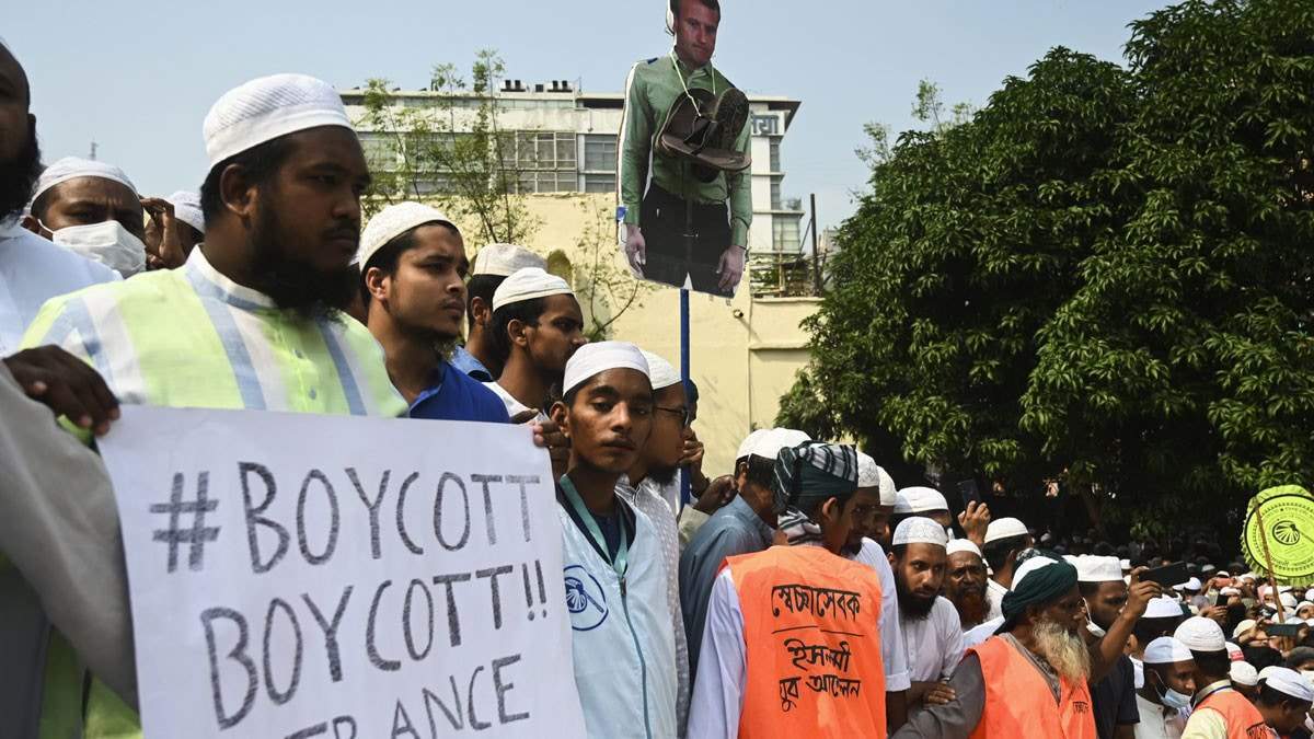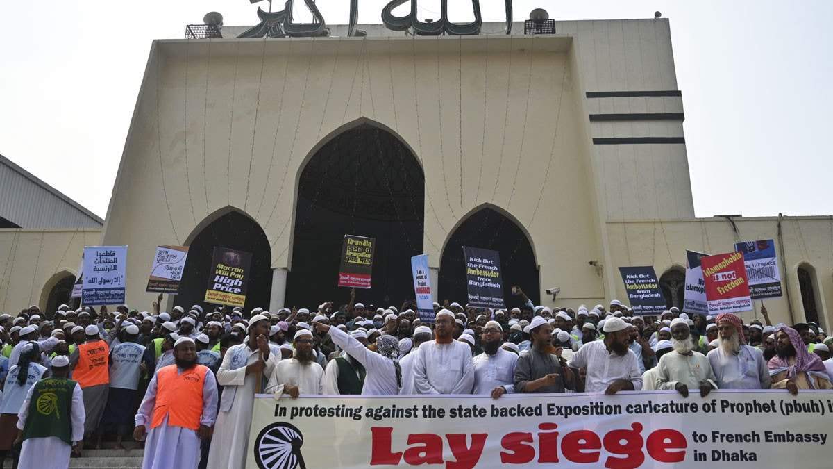 تظاهر عشرات الآلاف، اليوم الثلاثاء، في العاصمة البنجالية دكا، ضد فرنسا، داعين إلى مقاطعة المنتجات الفرنسية.