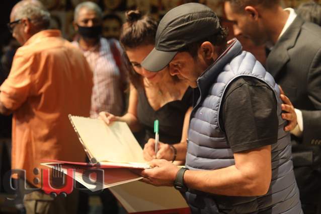 وحرص هنيدي على تسجيل كلمة فى سجل ضيوف العرض، بحضور عدد من الفنانين منهم الفنانة مي فاروق، المخرج تامر مهدي، والفنان مصطفى شوقي .