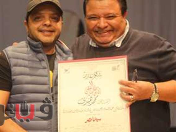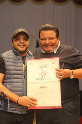 كرم المخرج خالد جلال رئيس قطاع شئون الإنتاج الثقافي، والمشرف العام على مركز الإبداع الفني، الفنان محمد هنيدي، فى مركز الإبداع الفني بدار الأوبرا المصرية.