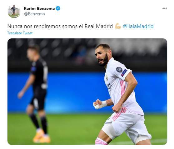 وكتب كريم بنزيما تغريدة على تويتر "لن نتخلى أبدا عن ريال مدريد.. هلا مدريد"