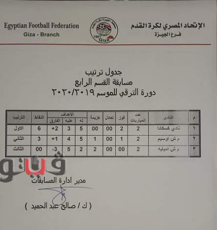 كسكادا يتصدر ترتيب ترقي القسم الرابع بالجيزة عقب الدور الأول