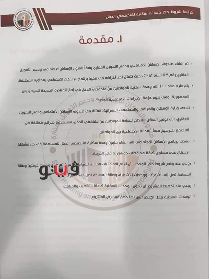 ننشر كراسة شروط شقق الإسكان الاجتماعي لمحدودي الدخل والتي تطرحها وزارة الإسكان ممثلة فى صندوق الإسكان الاجتماعي والتمويل العقاري وتضم 100 ألف وحدة سكنية كاملة التشطيب بمشروع الإسكان الاجتماعي لمحدودي الدخل، بـ10 مدن جديدة.