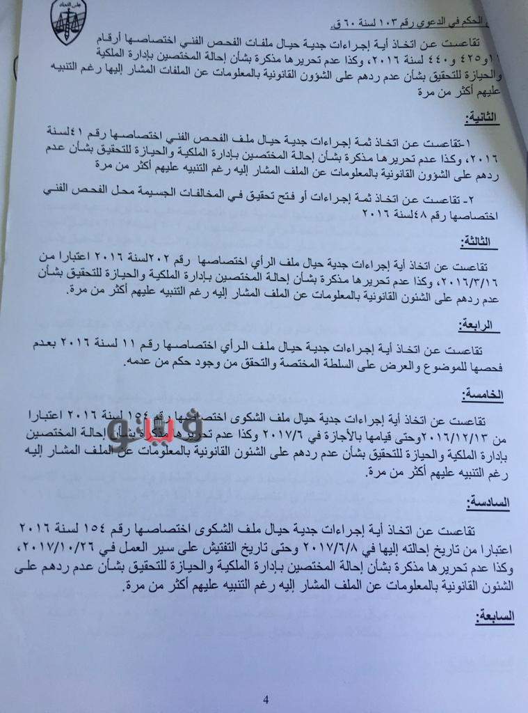 وتبين من أوراق القضية أن المخالفين تقاعسوا عن اتخاذ الإجراءات القانونية حيال القيد بانتظام في سجل فتاوى الأملاك وتركوا خانات خالية للقيد بها لاحقًا، وأستخدموا سجل قيد القضايا في قيد فتاوى رأي الأملاك، وأسندوا للبعض أعمال قانونية رغم كونهم "تنمية إدارية".