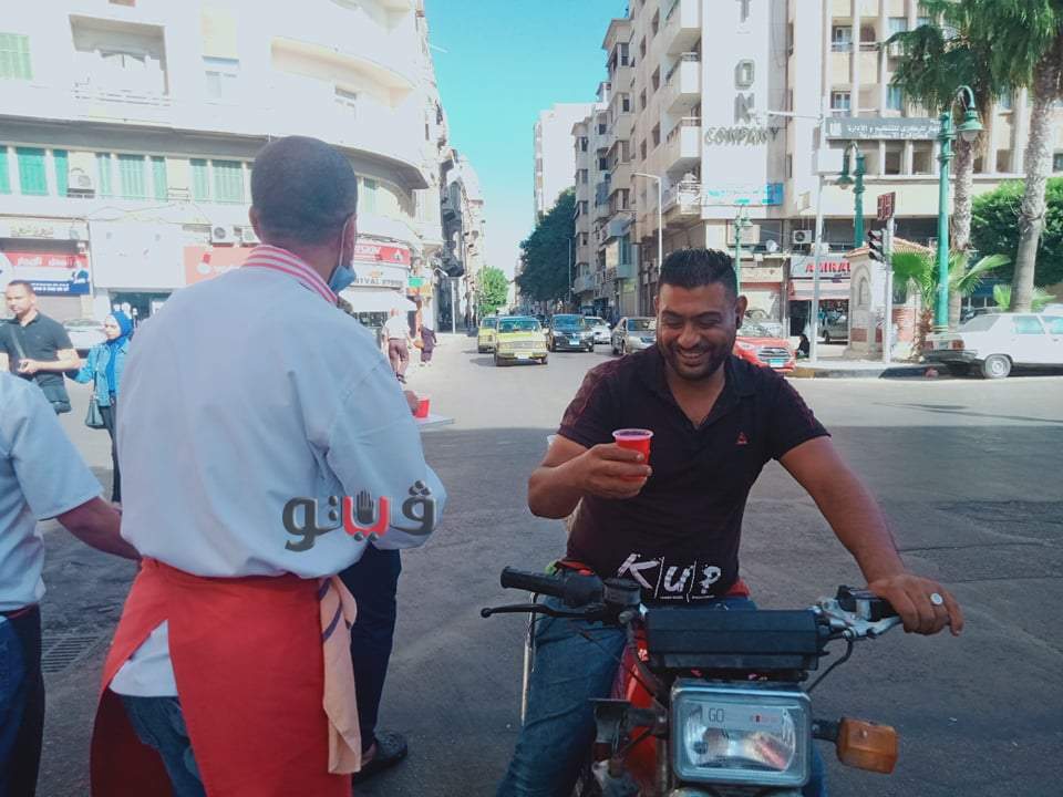 أهالي الإسكندرية يوزعون شربات بالموز على المارة احتفالا بذكرى المولد النبوي | صور