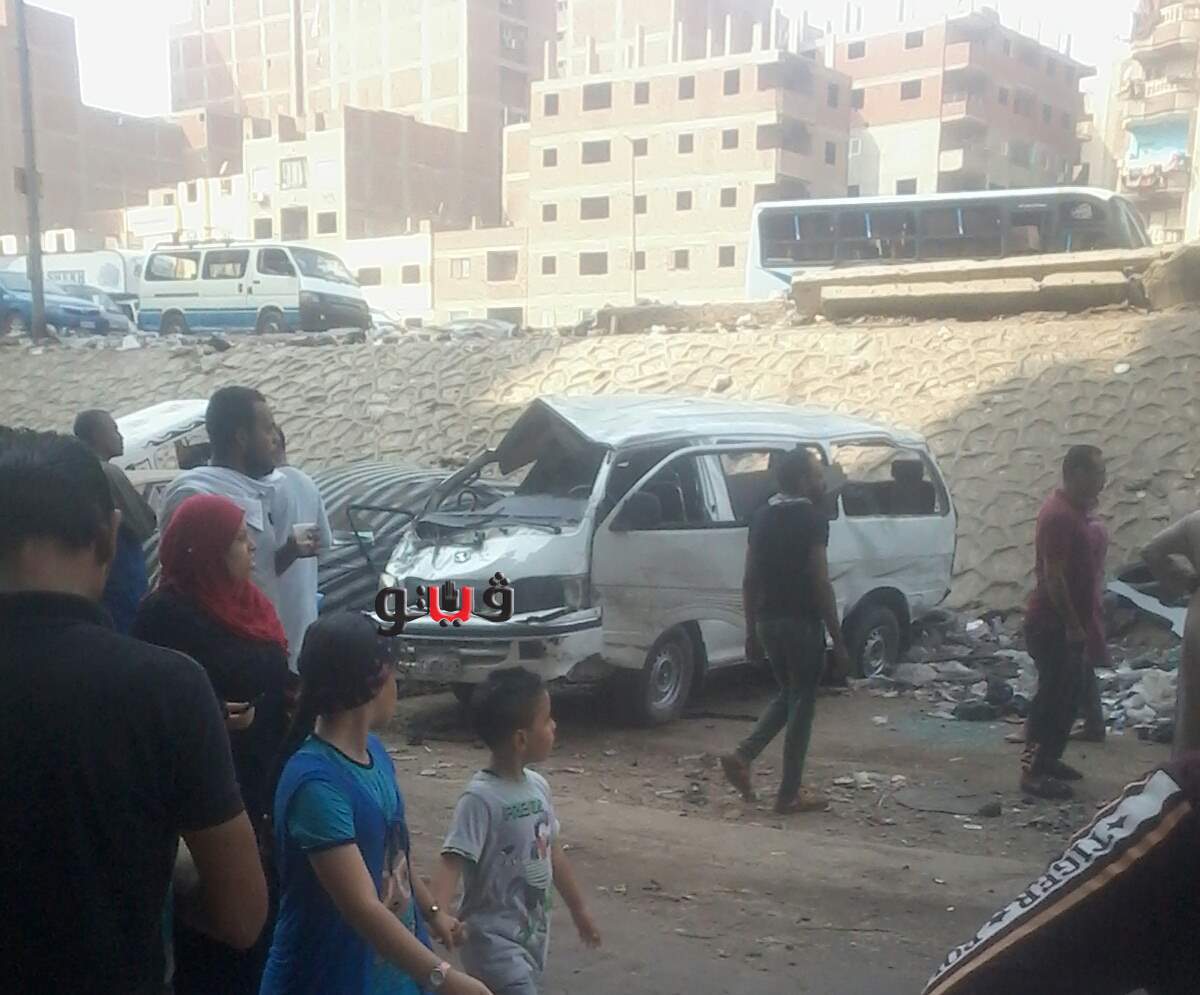 مصرع سيدة وإصابة 7 آخرين في انقلاب ميكروباص من أعلى دائري الخصوص | صور