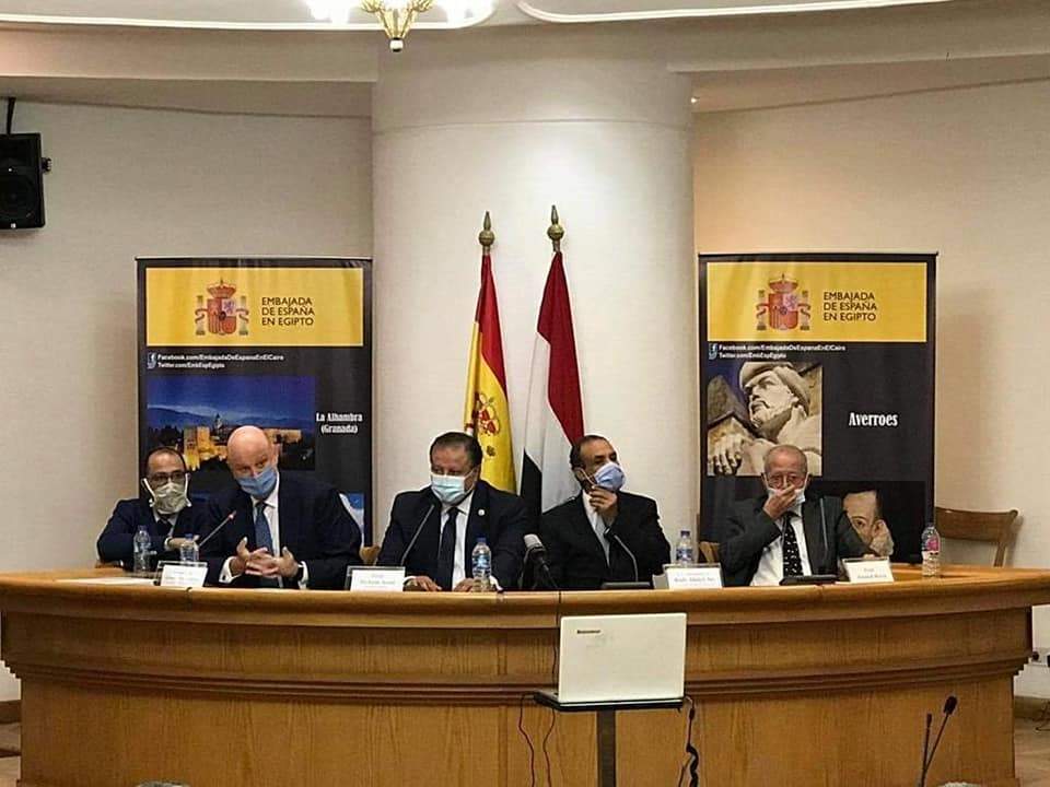 وأضاف :"من هذه الإسهامات الفكرية لبعض المؤرخين أمثال: المقريزى والقلقشندى والرحالة ابن الزبير المنتمى إلى مدينة بالينسيا الإسبانية، والرحالة المصرى لدى بلاط حاكم مدينة غرناطة عبد الباسط، والشاعر والعالم الشامل ابن الخطيب وعلى صعيد المدن؛ فلقد كان لكل من غرناطة وقرطبة وبالينسيا أو مورسيا التى عاشت بها شخصيات شهيرة مثل ابن عربى والمرسى أبو العباس، كان لها إسهامات عديدة طوال سبعة قرون شأنها شأن القاهرة والإسكندرية، وتزامنا مع احتفال إسبانيا بعيدها الوطنى الذى يحل فى اليوم الثانى عشر من أكتوبر، وتدعيما للروابط الثقافية مع هذه الدولة الصديقة، تنعقد هذه الندوة الجديدة التي تنظم تحت شعار: (مصر إسبانيا : علاقات ثقافية)"
