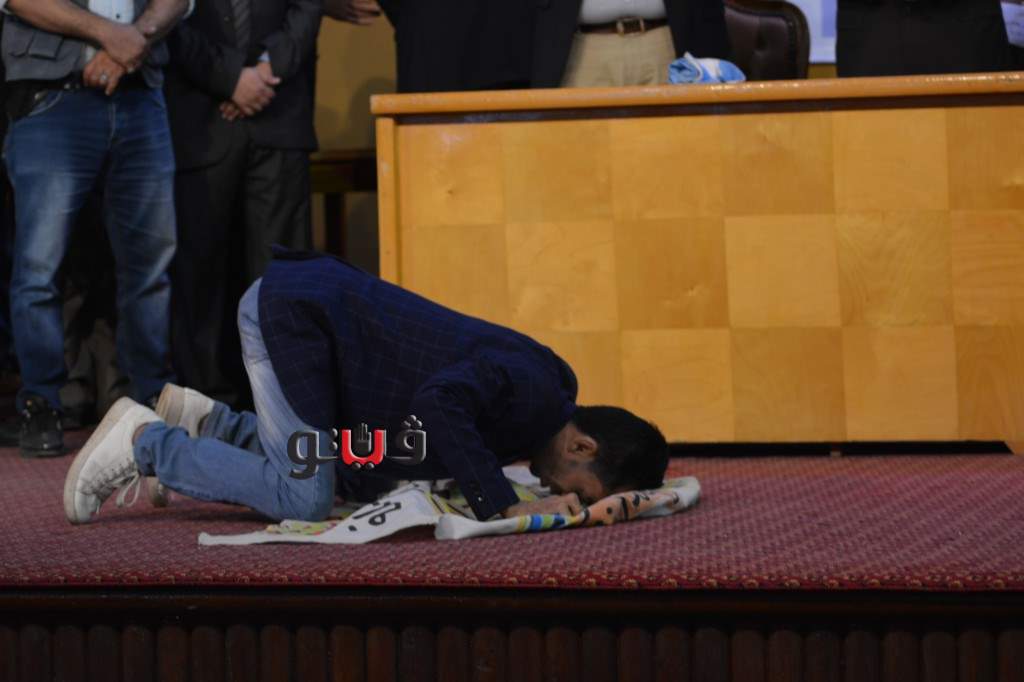 مشجع يخلع ملابسه وآخر يسجد لله في احتفالية وزير قطاع الأعمال بصعود المحلة للدوري الممتاز | صور