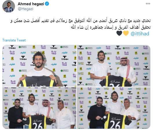 وظهر أحمد حجازي، لاعب الاتحاد السعودي حاليًا، في صور نشرها ممسكًا بقميص الاتحاد السعودي الذي يحمل رقم 26.