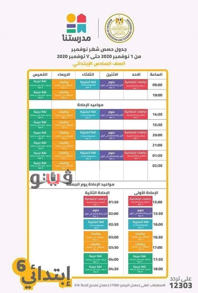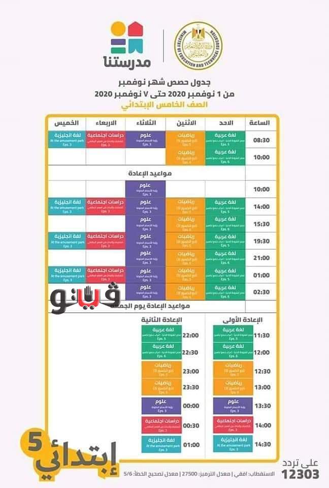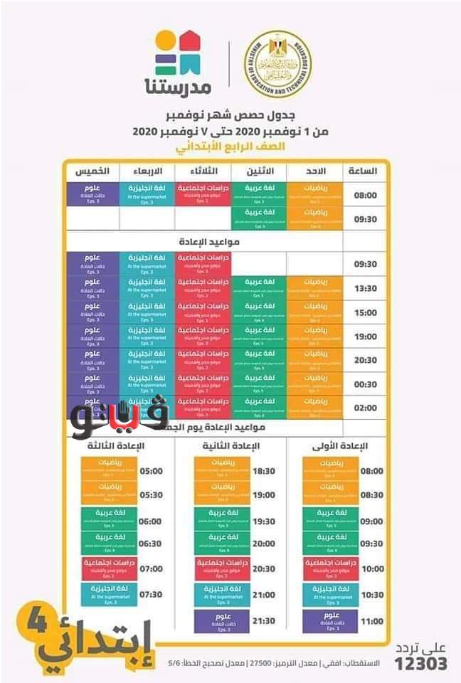أعلنت وزارة التربية والتعليم والتعليم الفني عن جداول الأسبوع الثالث بعد تحديثها لعرض الحصص التعليمية للمواد الأساسية (المواد داخل المجموع) من الصف الرابع الابتدائى حتى الثالث الإعدادي على القناة التعليمية "مدرستنا".