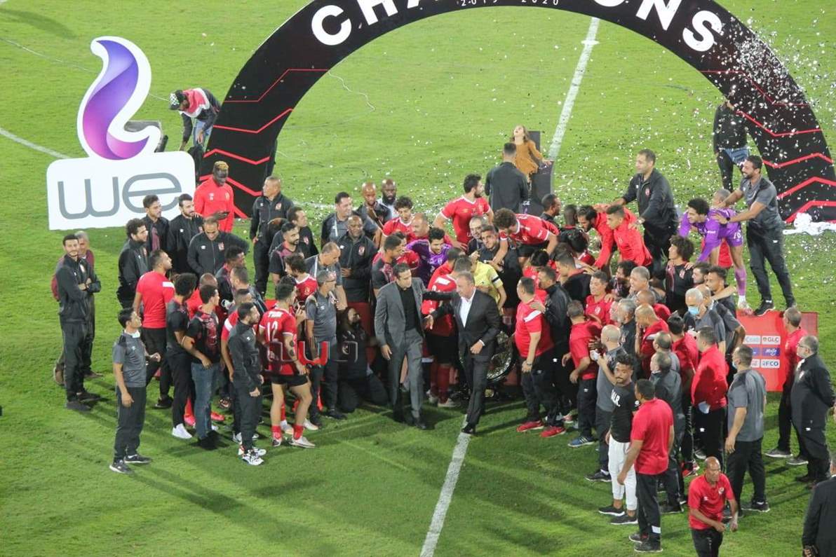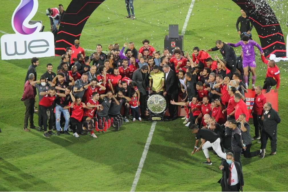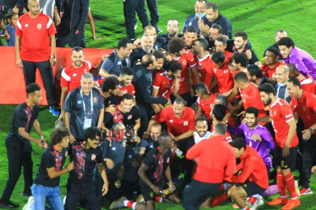 لاعبو الأهلي يحتفلون بالتتويج بدرع الدوري على إستاد السلام | صور