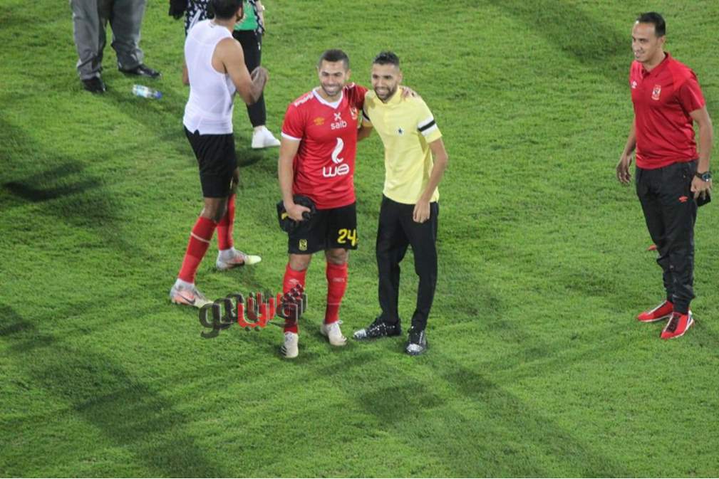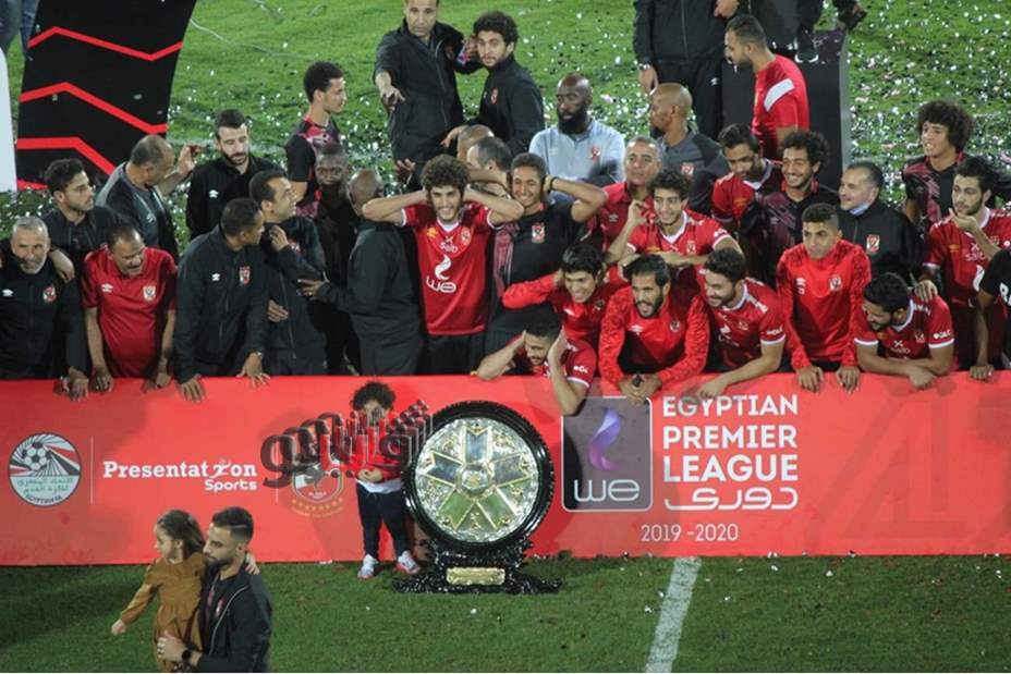 وحرص لاعبو الأهلي على التقاط صورة تذكارية مع درع الدوري، خلال احتفالهم بطريقة مؤمن زكريا الشهيرة، بوضع أيديهم على أذانهم.