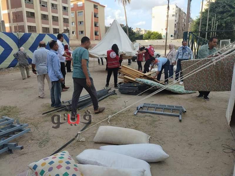 وأضاف البيان الصادر اليوم، أنه تم انشاء معسكر ايواء مؤقت للاسر المتضرره بمركز شباب النصر بأمبروزو بجوار قهوه العسكري بالتنسيق مع جمعية الهلال الأحمر المصري بالإسكندرية.