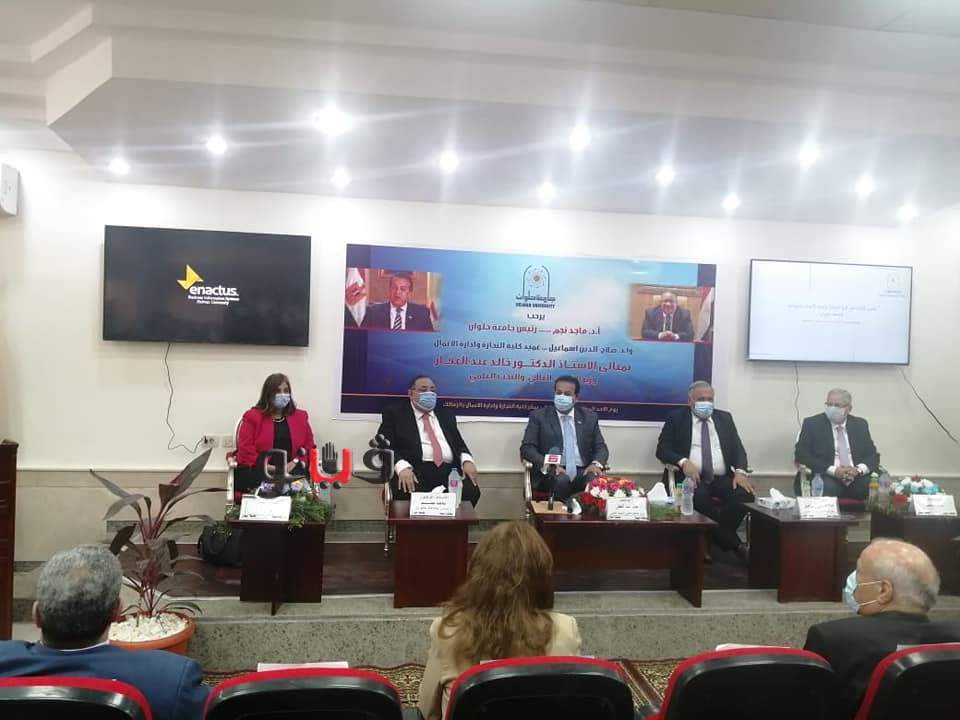 وفي ختام الفعاليات قام الدكتور ماجد نجم رئيس جامعة حلوان بإهداء الدكتور خالد عبد الغفار وزير التعليم العالي والبحث العلمي درع الجامعة تقديرا له، كما قام الدكتور صلاح اسماعيل عميد كلية التجارة وإدارة الأعمال بإهداء معالي الوزير درع الكلية.