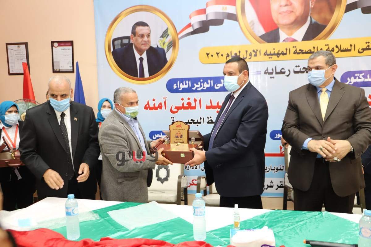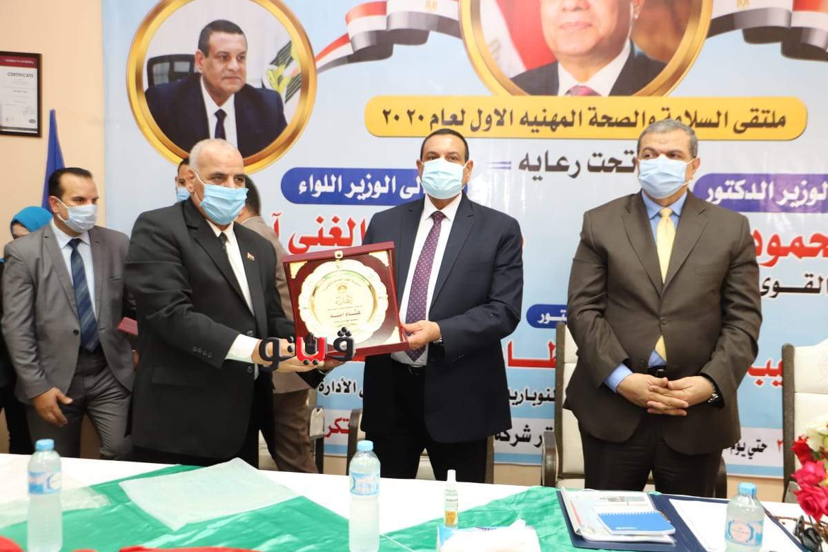 وقدم محافظ البحيرة درع المحافظة لوزير القوى العاملة تقديرًا له على جهده في الارتقاء بالعملية الإنتاجية من خلال عقد ملتقيات السلامة والصحة المهنية، فضلا عن إقامة علاقات عمل متوازنة بين طرفي العملية الإنتاجية، ورعاية وحماية العمالة غير المنتظمة، وتسليم شهادات "أمان".