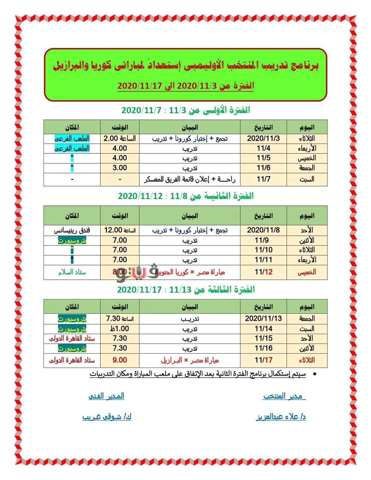 بالمواعيد.. تعرف على برنامج استعدادات المنتخب الأوليمبي لمواجهتي كوريا والبرازيل