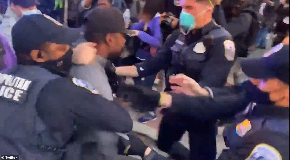 BREAKING: MPD Officers have made at least 1 arrest at BLM plaza for refusing to vacate the area so an illegally parked vehicle can be moved. pic.twitter.com/7cdYjxpJuS— James Klüg (@realJamesKlug) November 3, 2020