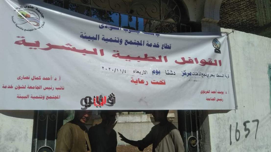 نظم قطاع خدمة المجتمع وتنمية البيئة بجامعة جنوب الوادي قافلة طبية بشربة بالسمطا بحرى نجع الذهنات وذلك تحت رعاية الدكتور يوسف غرباوي رئيس الجامعة وإشراف الدكتور احمد كمال نصاري نائب رئيس الجامعة لشئون خدمة المجتمع وتنمية البيئة.