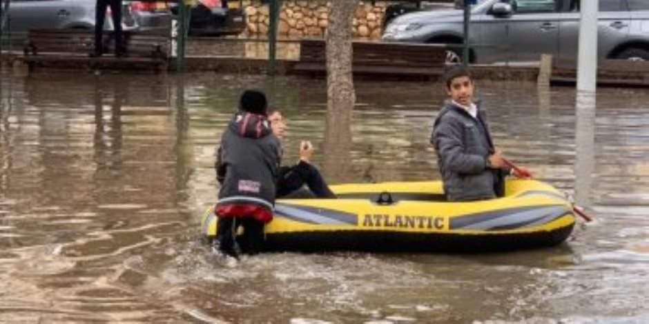 إسرائيليون يلجئون للزوارق هربا من السيول | صور