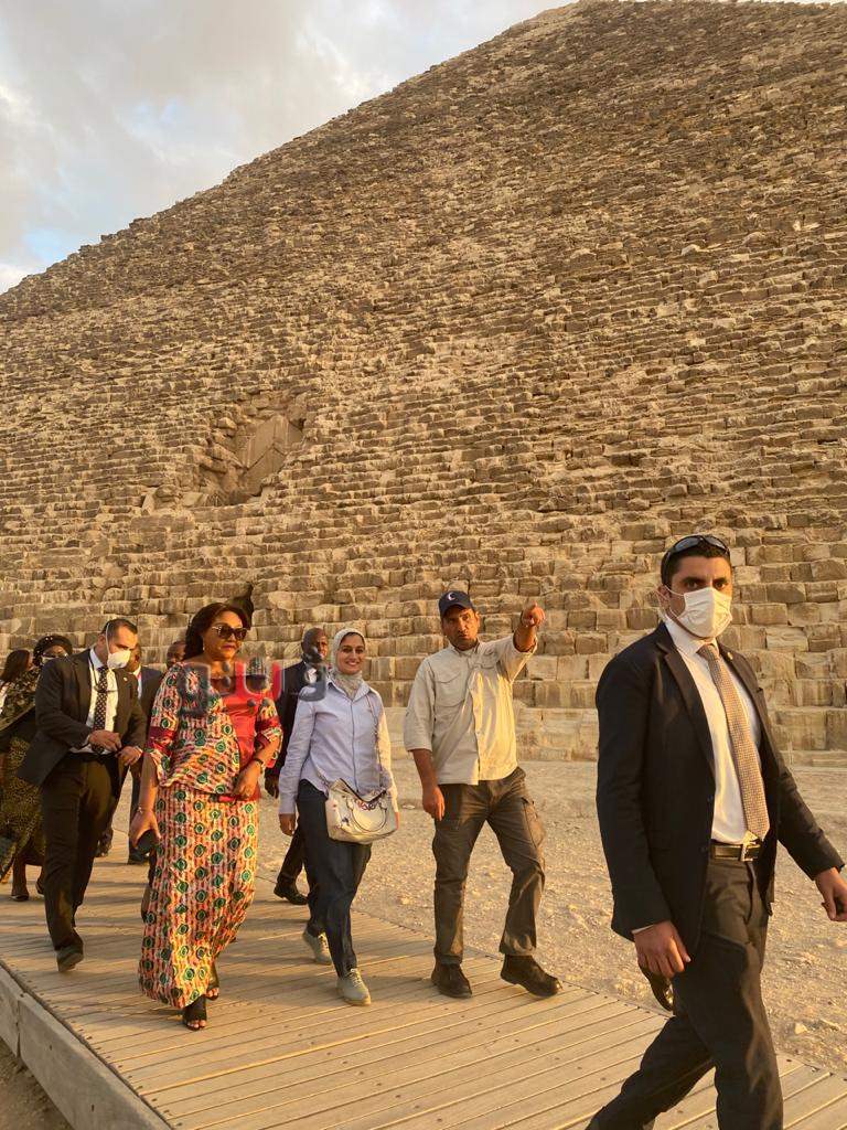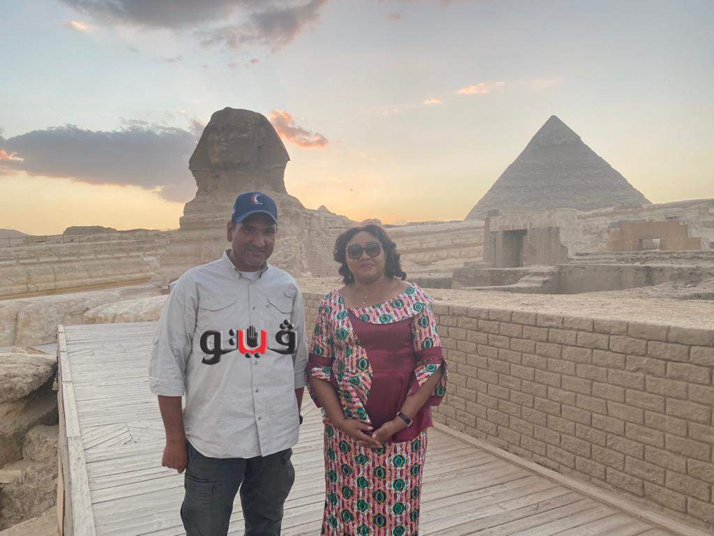 حرم رئيس دولة الكونغو تزور منطقة آثار الهرم وتبدي انبهارها بالأهرامات وأبو الهول| صور
