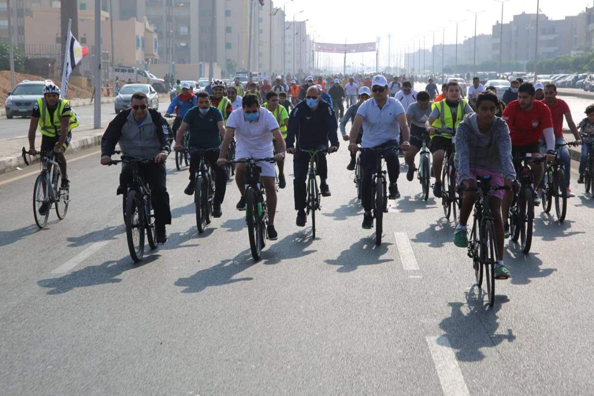 وزير الرياضة يشارك شباب مدينة الشروق ماراثون الدراجات