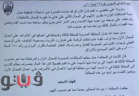 أصدرت المحكمة التأديبية العليا بمجلس الدولة حكمها في القضية رقم 229 لسنة 61 قضائية عليا ببراءة وكيل أول وزارة السياحة ورئيس الإدارة المركزية للفنادق والقرى السياحية ومدير عام بالرقابة على المنشأت بعد ثبوت عدم إرتكابهم مخالفات مالية وإدارية جسيمة ترتب عليها الإضرار بالمال العام