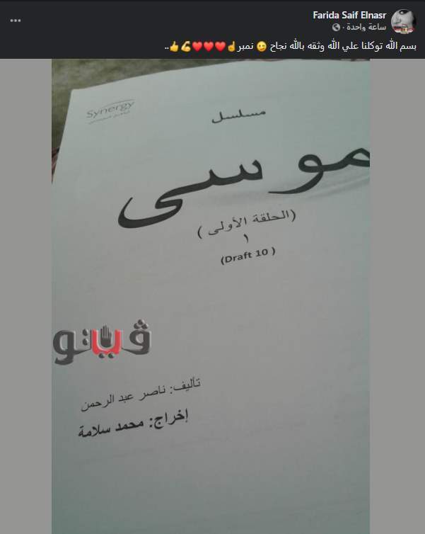 ونشرت فريدة صورة من غلاف سكريبت الحلقة الأولى للمسلسل، عبر حسابها الشخصي على موقع التواصل الاجتماعي “فيسبوك”، وعلقت قائلةً: “بسم الله توكلنا على الله وثقة بالله نجاح، نمبر وان”.