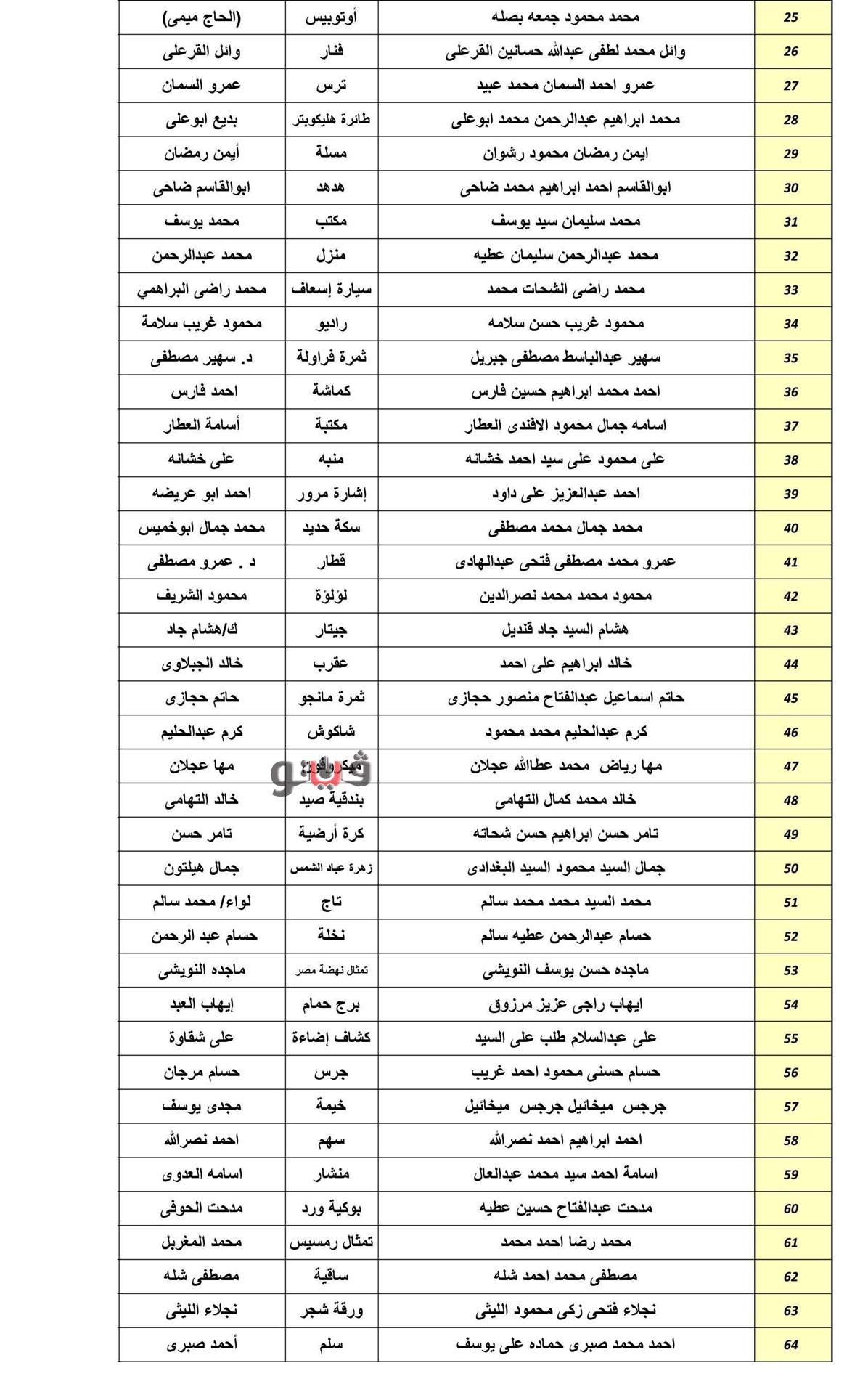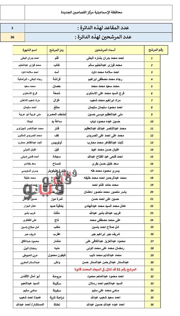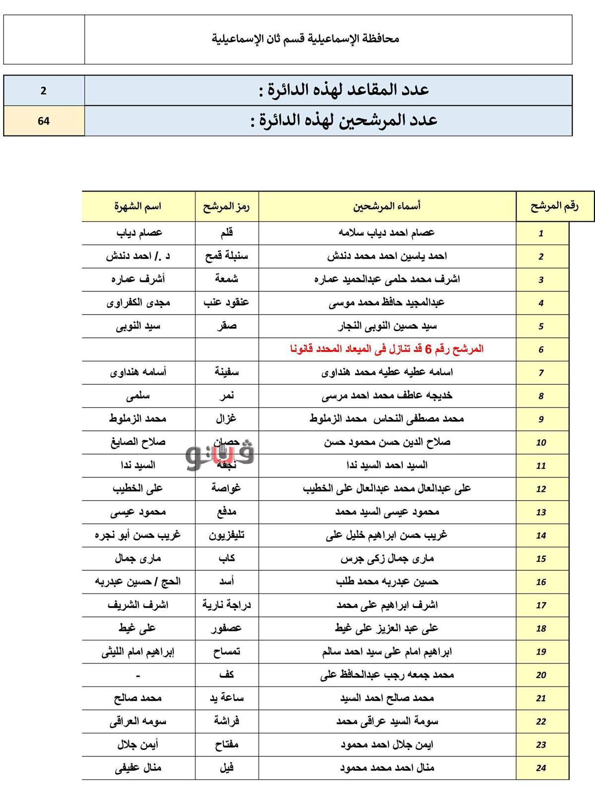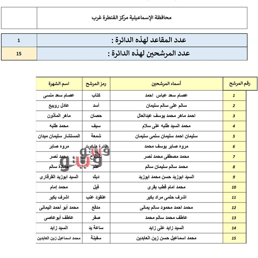 وفيما يلي أسماء المرشحين في محافظة الإسماعيلية: