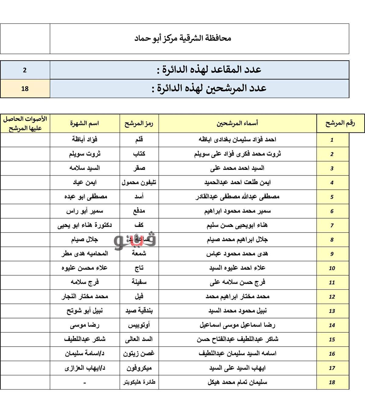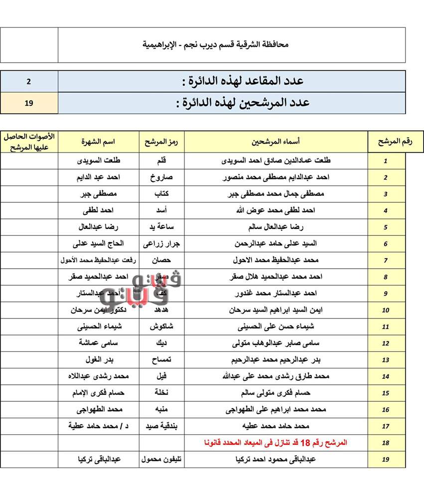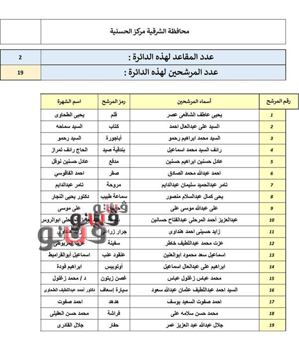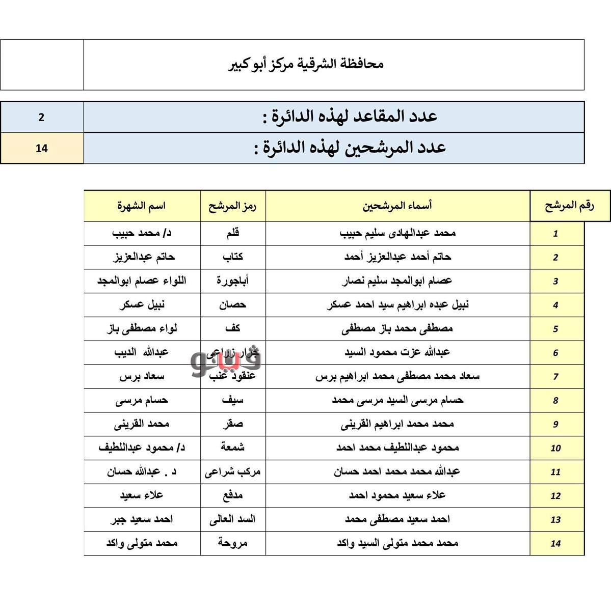 وفيما يلي أسماء المرشحين في محافظة الشرقية: