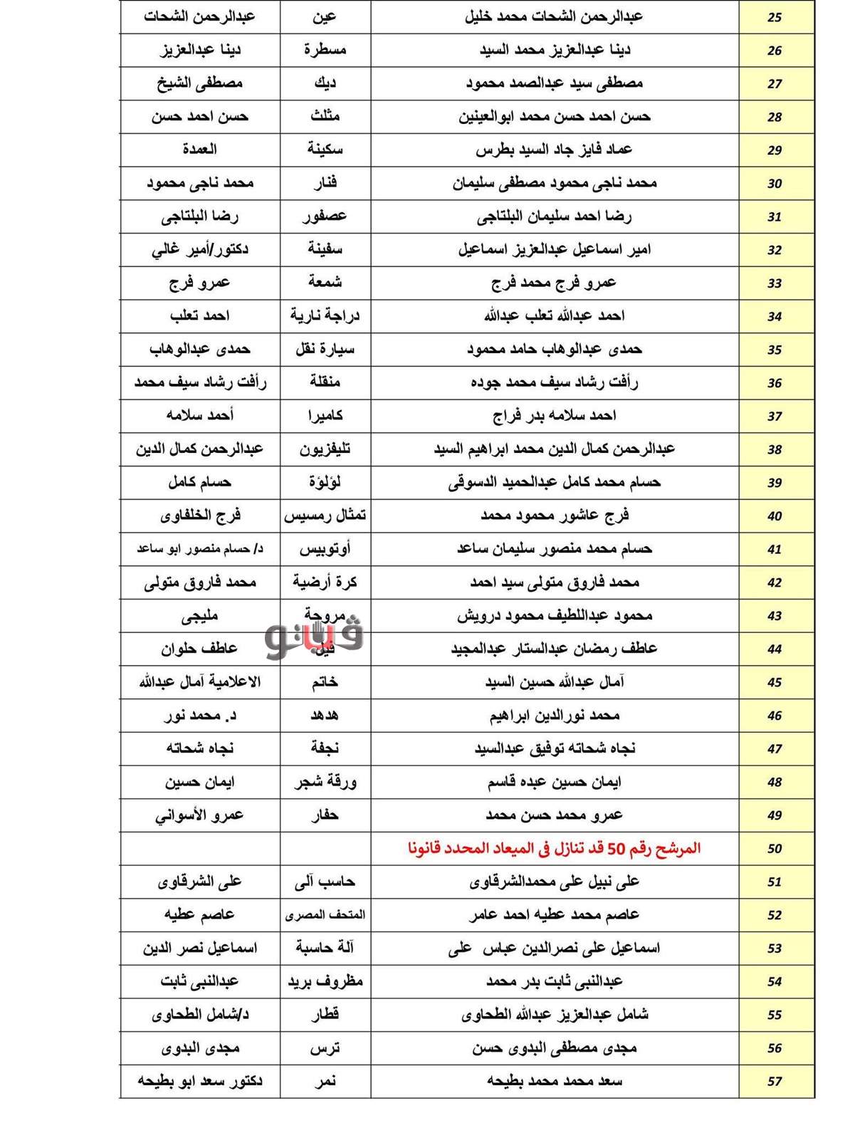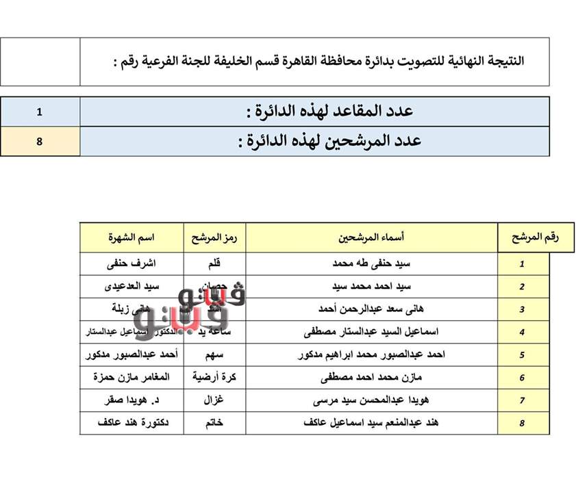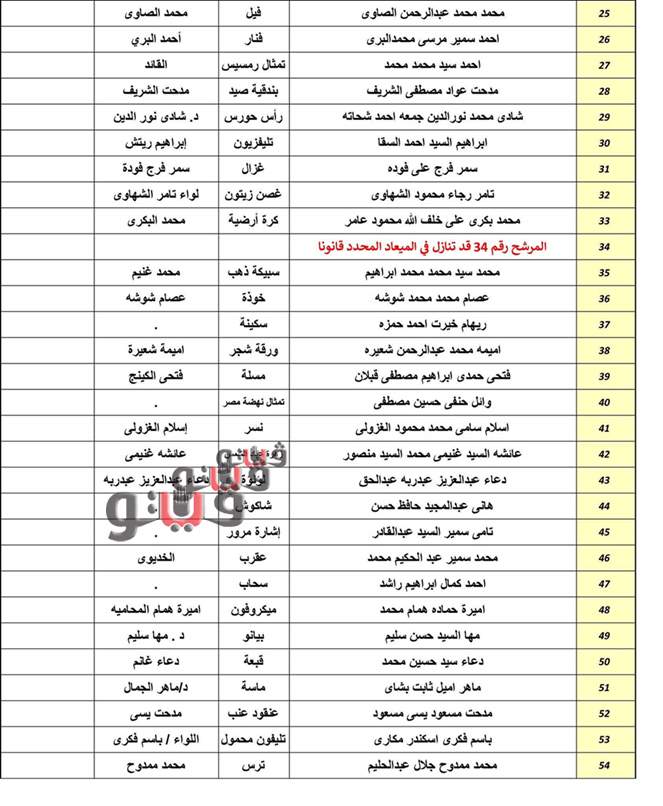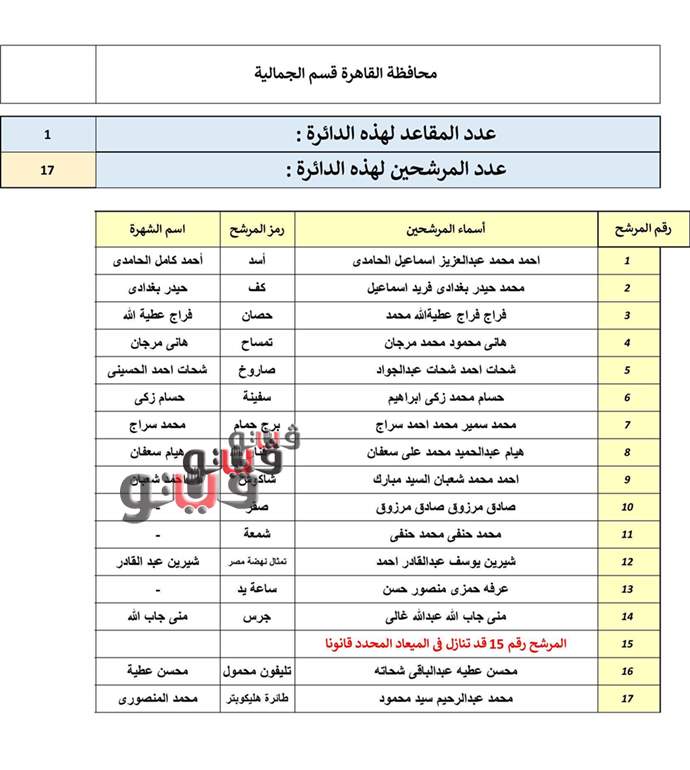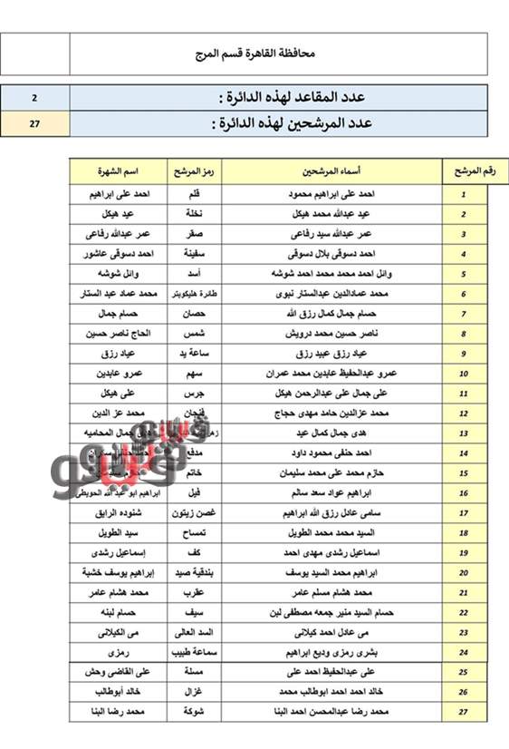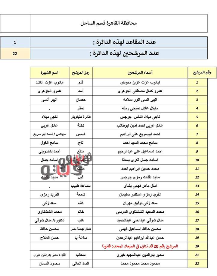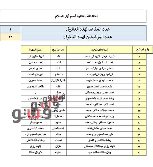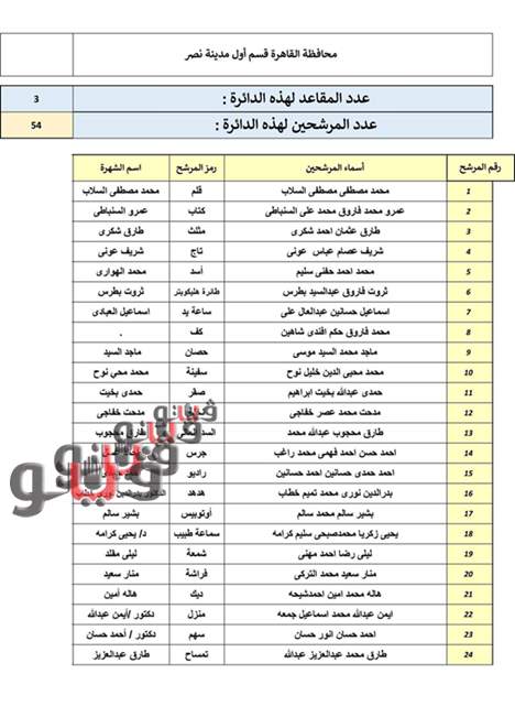 وفيما يلي أسماء المرشحين في محافظة القاهرة: