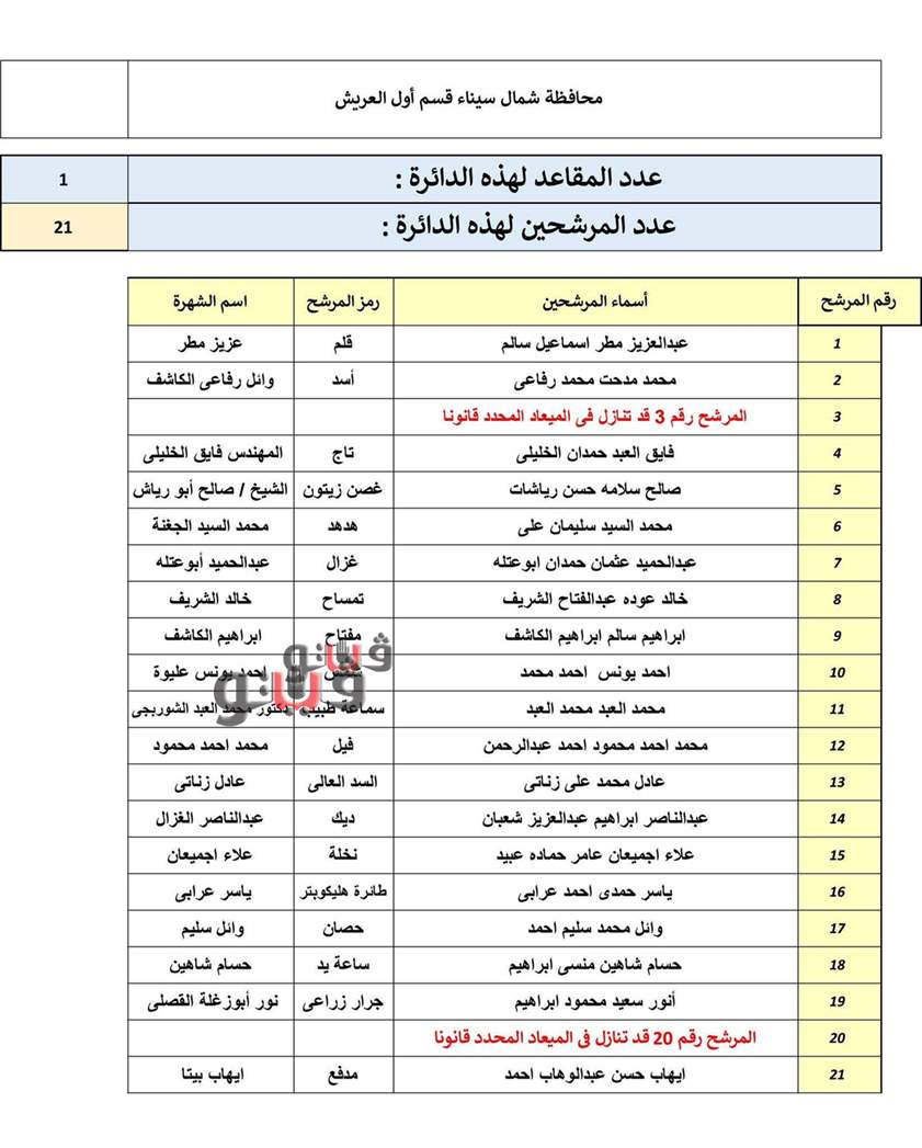 وفيما يلي أسماء المرشحين في شمال سيناء: