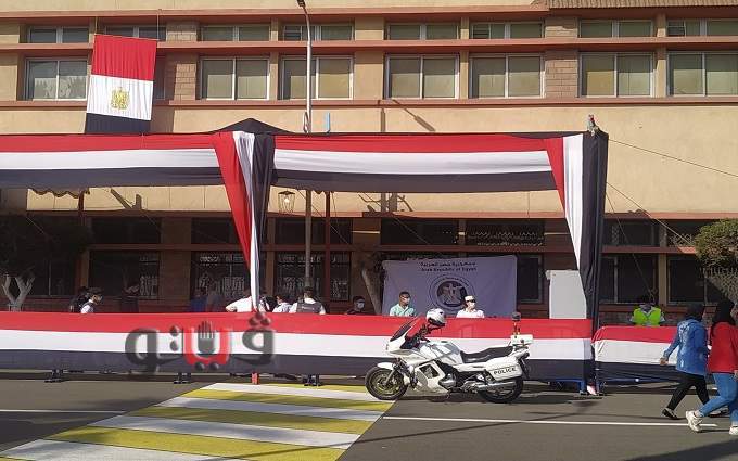 أعلام مصر ضخمة تستقبل الناخبين على بوابات مقرات اللجان ببورسعيد | صور