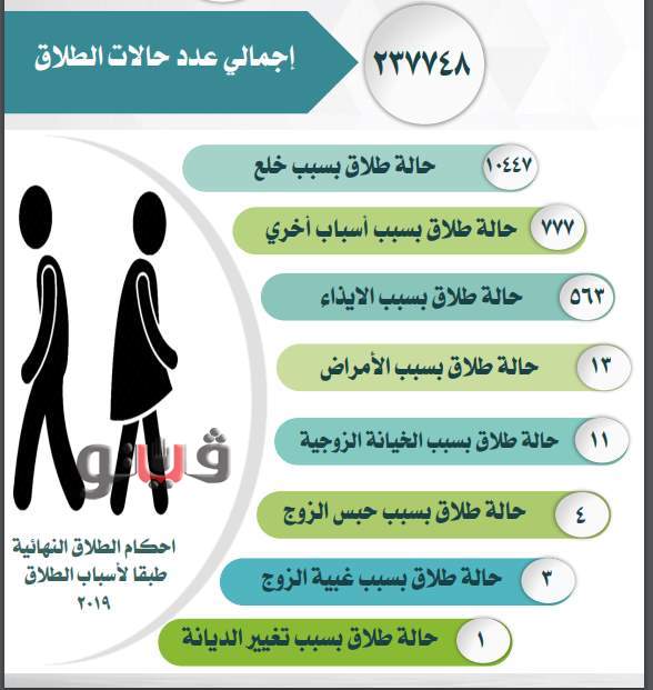 رصدت النشرة السنوية لإحصاءات الزواج والطلاق لعام 2019"، الصادرة عن الجهاز المركزي للتعبئة العامـة والإحصاء أسباب حالات الطلاق في مصر .