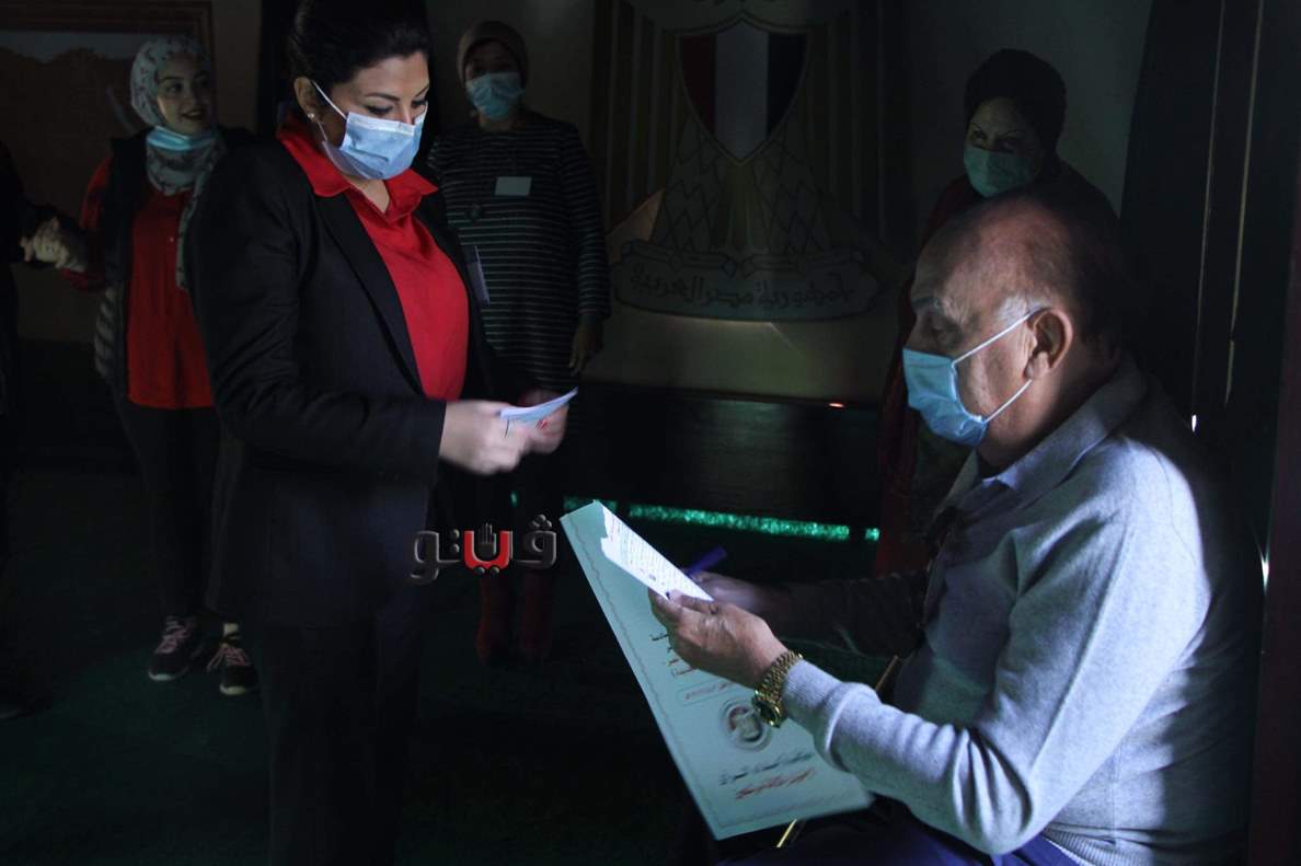 رئيسة لجنة بمصر الجديدة تساعد كبار السن على التصويت بانتخابات النواب | صور