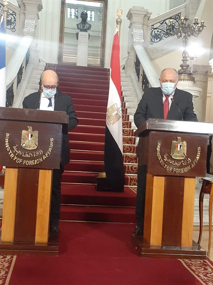 وأكد خلال مؤتمر صحفى مشترك اليوم فى القاهرة مع جان إيف لودريان، وزير أوروبا والشئون الخارجية الفرنسي، أن علاقة مصر بفرنسا علاقة تاريخية وبينها توافق فى الرؤى.