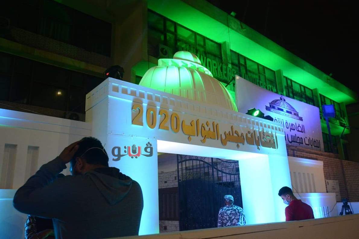 الإضاءة بالألوان.. الجامعة العمالية تتزين لاستقبال الناخبين قبل غلق اللجان | صور