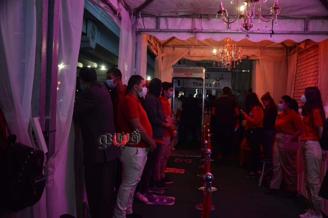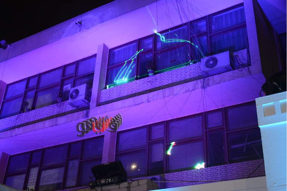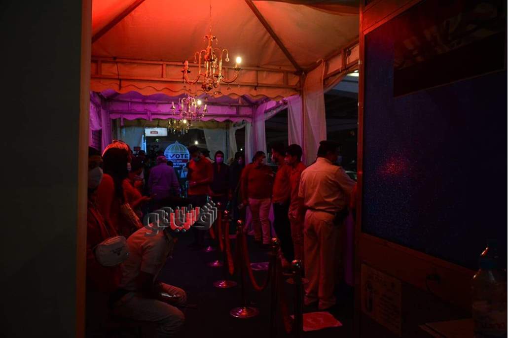 العمالية العديد من الكشافات التي تأتي بألوان مختلفة، أثناء استقبالها المواطنين للإدلاء