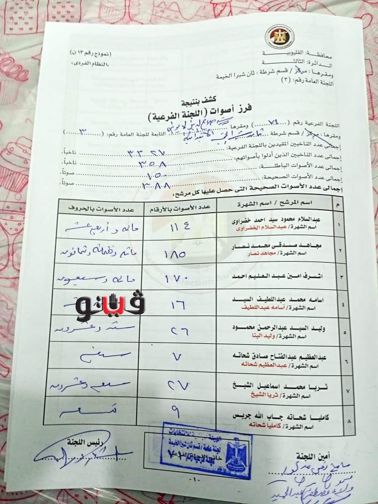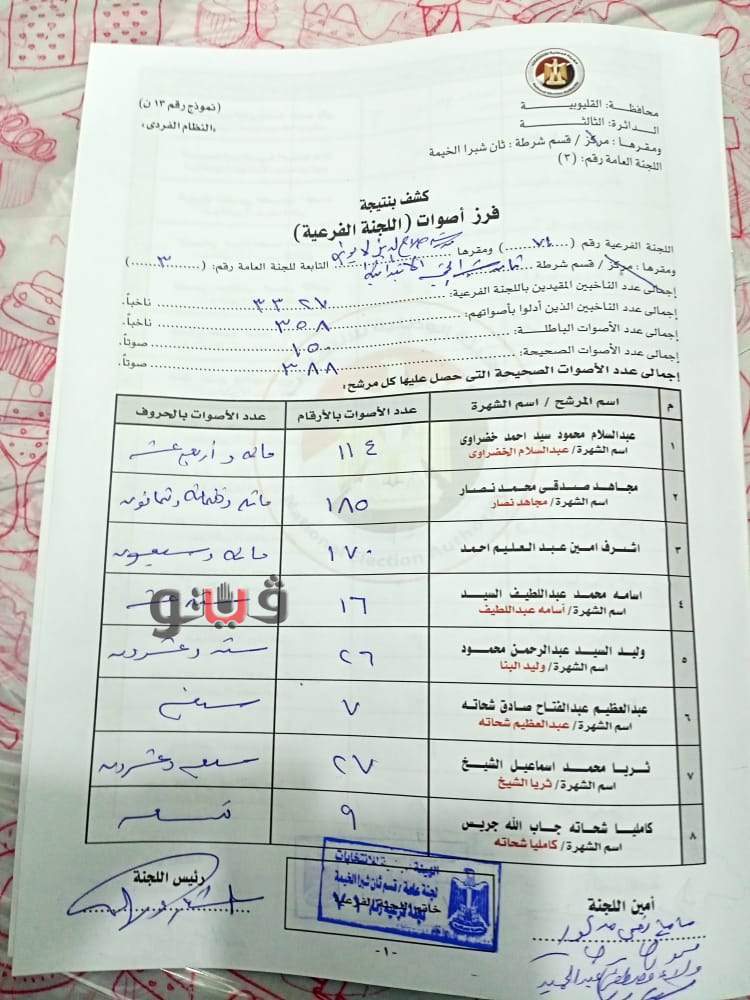 الحصر العددي لنتائج 6 لجان انتخابية لمجلس النواب بشبرا الخيمة