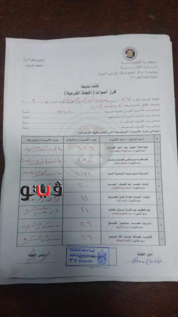 ومن المقرر أن تتلقى اللجنة العامة بمحافظة القليوبية الحصر العددي لأصوات كل مرشح بكافة اللجان الفرعية تمهيدًا لتجميعها وإرسالها إلى الهيئة الوطنية للانتخابات التي ستعلن النتيجة النهائية عقب إضافة أصوات الناخبين بالخارج.