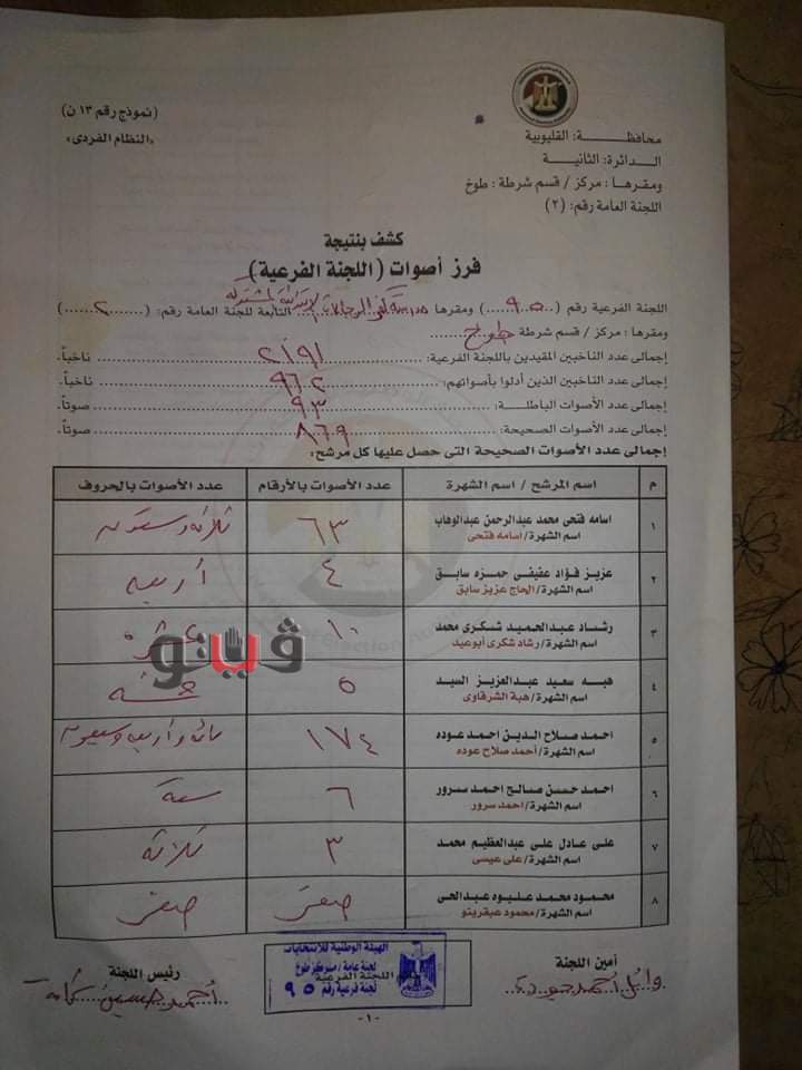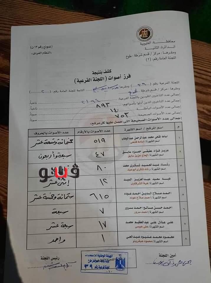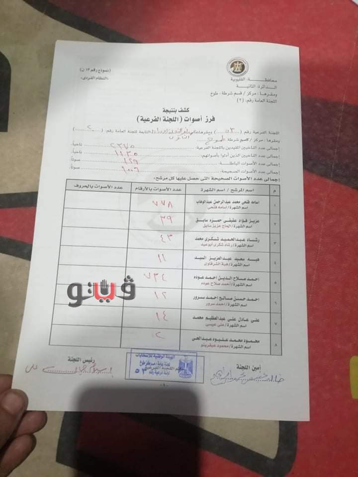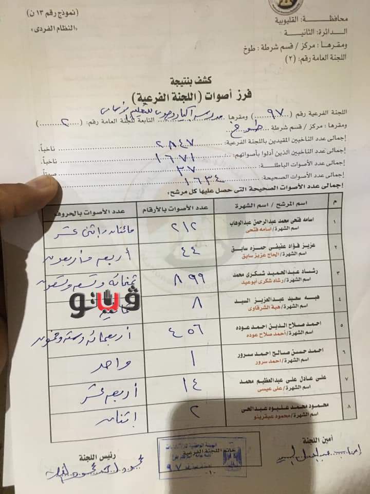 و88 و1 و39 و26 و95، ومقرها مركز طوخ حصول المرشح أسامة فتحي على 10955 صوتًا، وعزيز