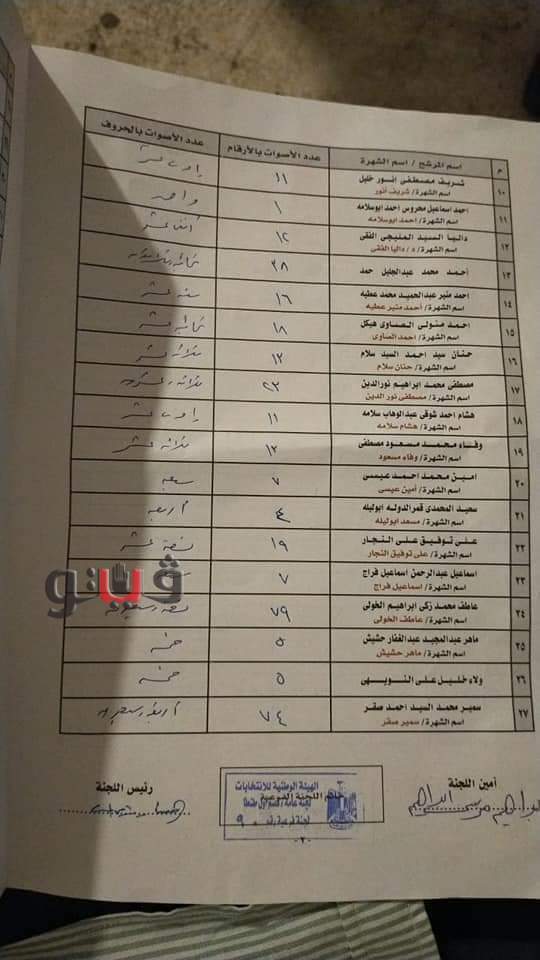 153 بمركز أول طنطا الحصر العددى لأصوات المرشح عبد المنعم شهاب 64 صوتا والمرشح
