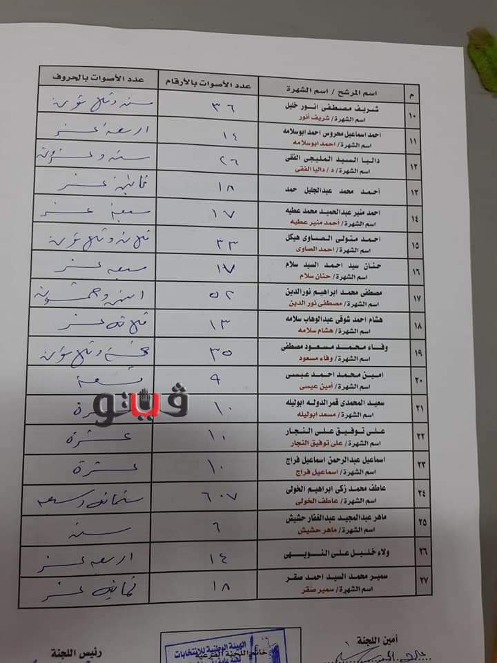 جلال عوارة 16 صوتا والمرشح محمد البديوى 498 صوتا.
