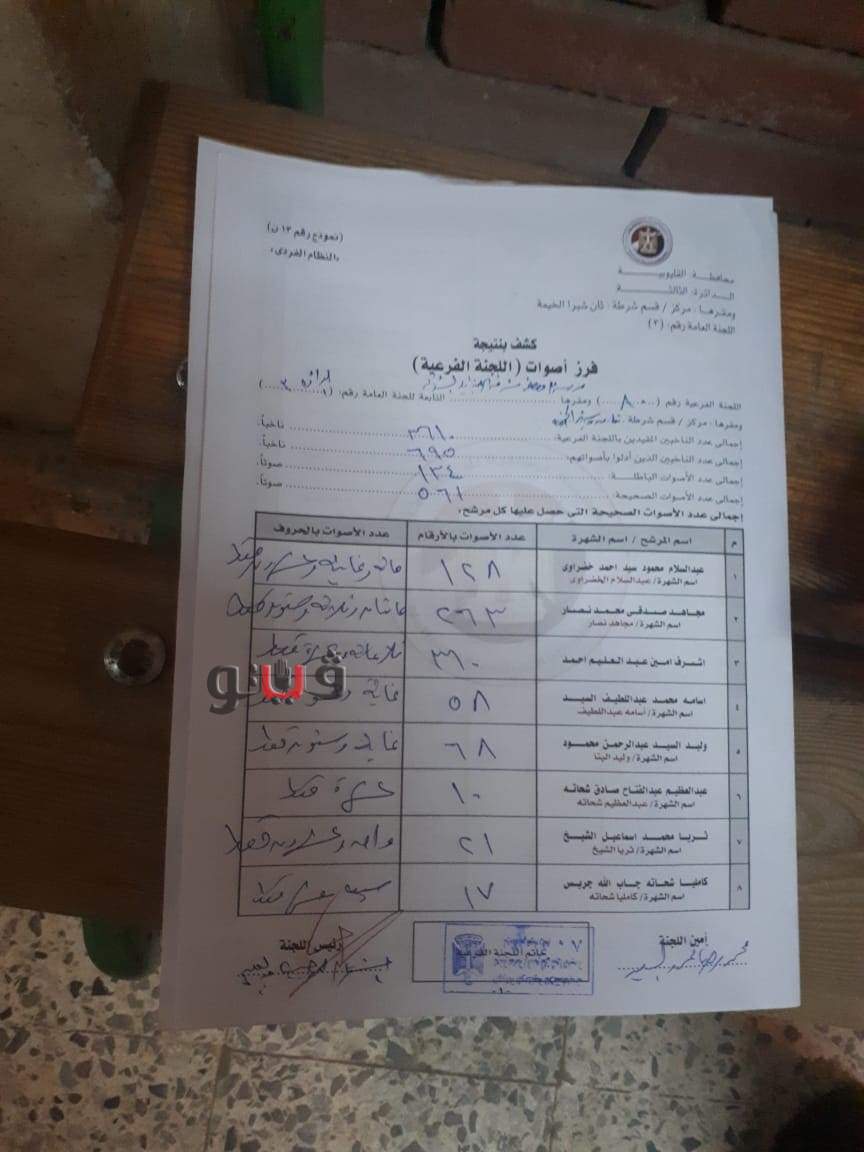 أظهرت عمليات الفرز باللجنة الفرعية رقم 80 ومقرها مدرسة مصطفى مشرفة، بدائرة شبرا الخيمة أن إجمالي عدد الناخبين المقيدين باللجنة الفرعية 3610 إجمالي عدد الناخبين الذين أدلوا بأصواتهم 695 صوتا، إجمالي عدد الأصوات الباطلة 134 صوتًا، وعدد الأصوات الصحيحة 561 صوتًا.