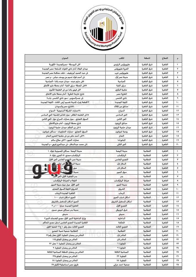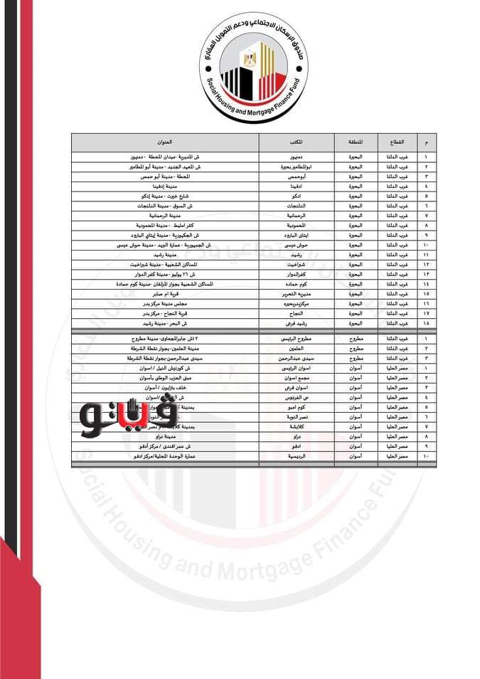 وتطرح الوزارة الإسكان ممثلة فى صندوق الاسكان الاجتماعى والتمويل العقارى 25 ألف وحدة سكنية كاملة التشطيب لمتوسطى الدخل، بـ10 مدن جديدة (بدر "حدائق العاصمة" – حدائق أكتوبر – 6 أكتوبر – 15 مايو – العاشر من رمضان – العلمين الجديدة – المنيا الجديدة – ناصر "غرب أسيوط" – رشيد الجديدة – أسوان الجديدة).