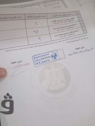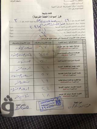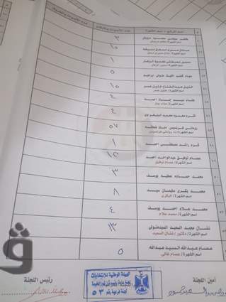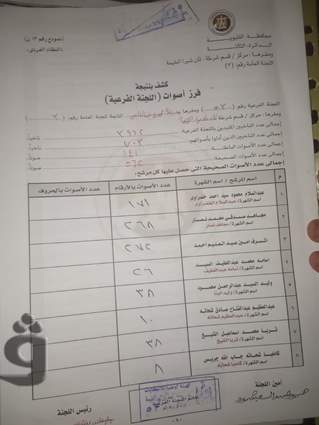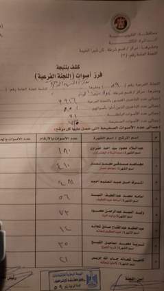أما بالنسبة للقائمه فبلغ إجمالي من أدلوا بأصواتهم 169765 الصحيحة منها 144586 صوتا، والباطلة 25179 صوتا.