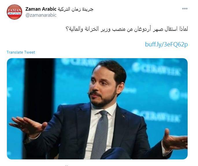 وكان إعلان وزير الخزانة والمالية بيرات ألبيراق، لاستقالته من منصبه، سبقه تصريح مثير للرئيس رجب أردوغان.