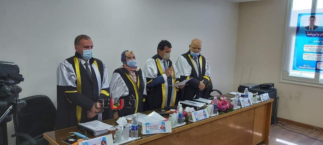 وتكونت لجنة الإشراف والمناقشة من الدكتور أشرف صبحى أستاذ الإدارة الرياضية والترويح بكلية التربية الرياضية جامعة حلوان ووزير الشباب والرياضة، والدكتور نبيل خليل ندا أستاذ الادارة الرياضية والترويح والعميد الأسبق لكلية التربية الرياضية بجامعة بنها، والدكتور محمود يحيى سعد أستاذ البحث العلمي بقسم العلوم التربوية والنفسية والاجتماعية والعميد الأسبق لكلية التربية الرياضية بجامعة بنها، والدكتورة كوثر السعيد محمود استاذ ورئيس قسم الإدارة الرياضية والترويح الأسبق وعضو اللجنة العلمية لترقي الأساتذة بكلية التربية الرياضية بنين جامعة حلوان، والدكتور حمادة محمدي عبد الحميد أستاذ مساعد بقسم الإدارة الرياضية والترويح بكلية التربية الرياضية بجامعة بنها.
